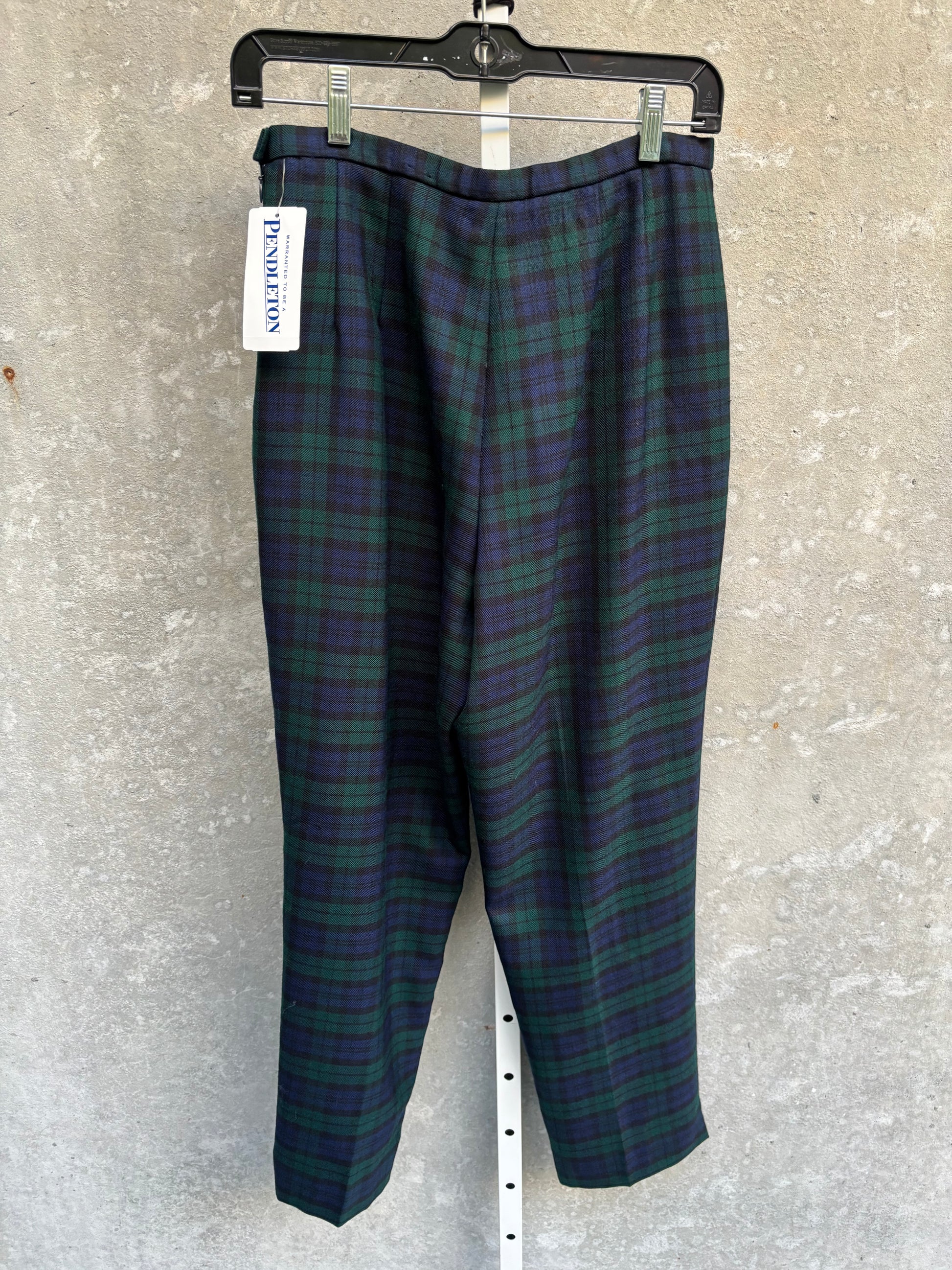 Dead-stock 100% Wool Green & Blue Plaid Tartan Pants