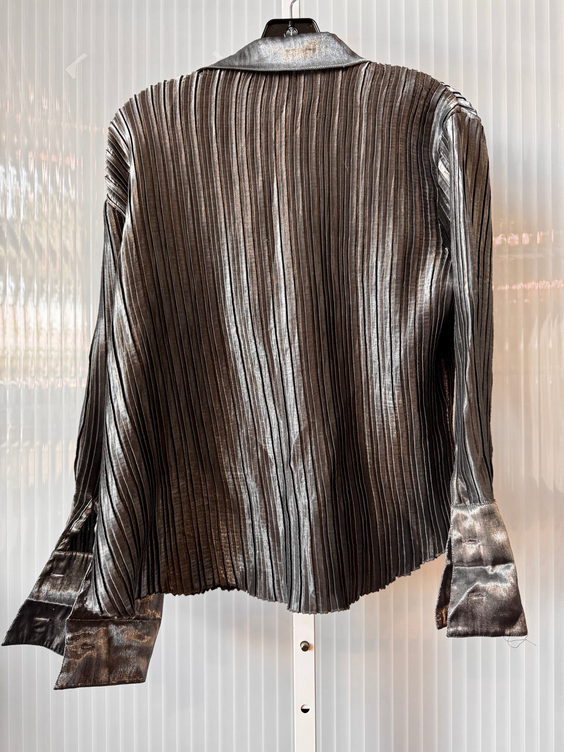 1980s Pleated Gunmetal Silver Button Up Shirt
