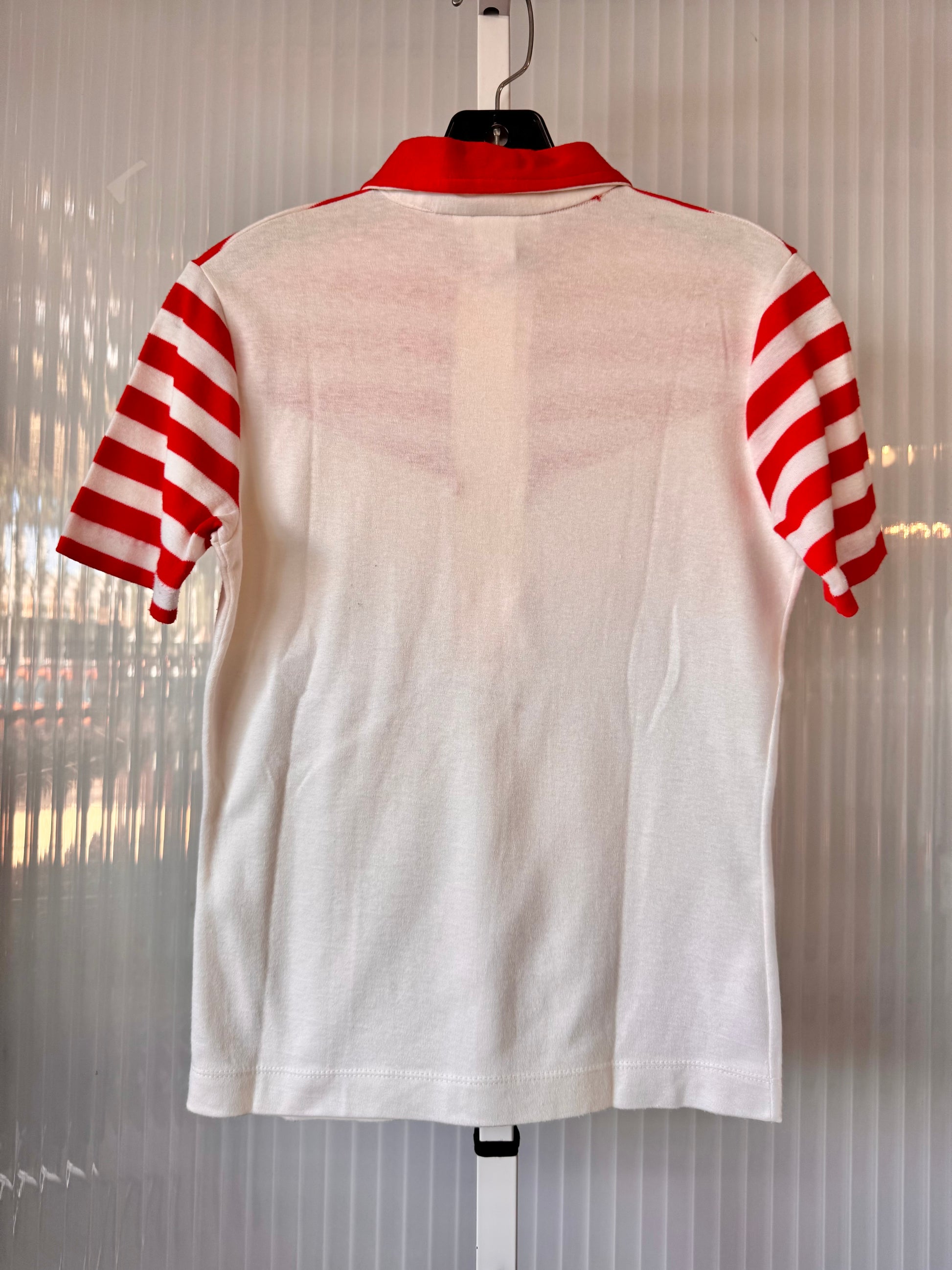 1990s White & Red Striped Point Collar Polo Shirt