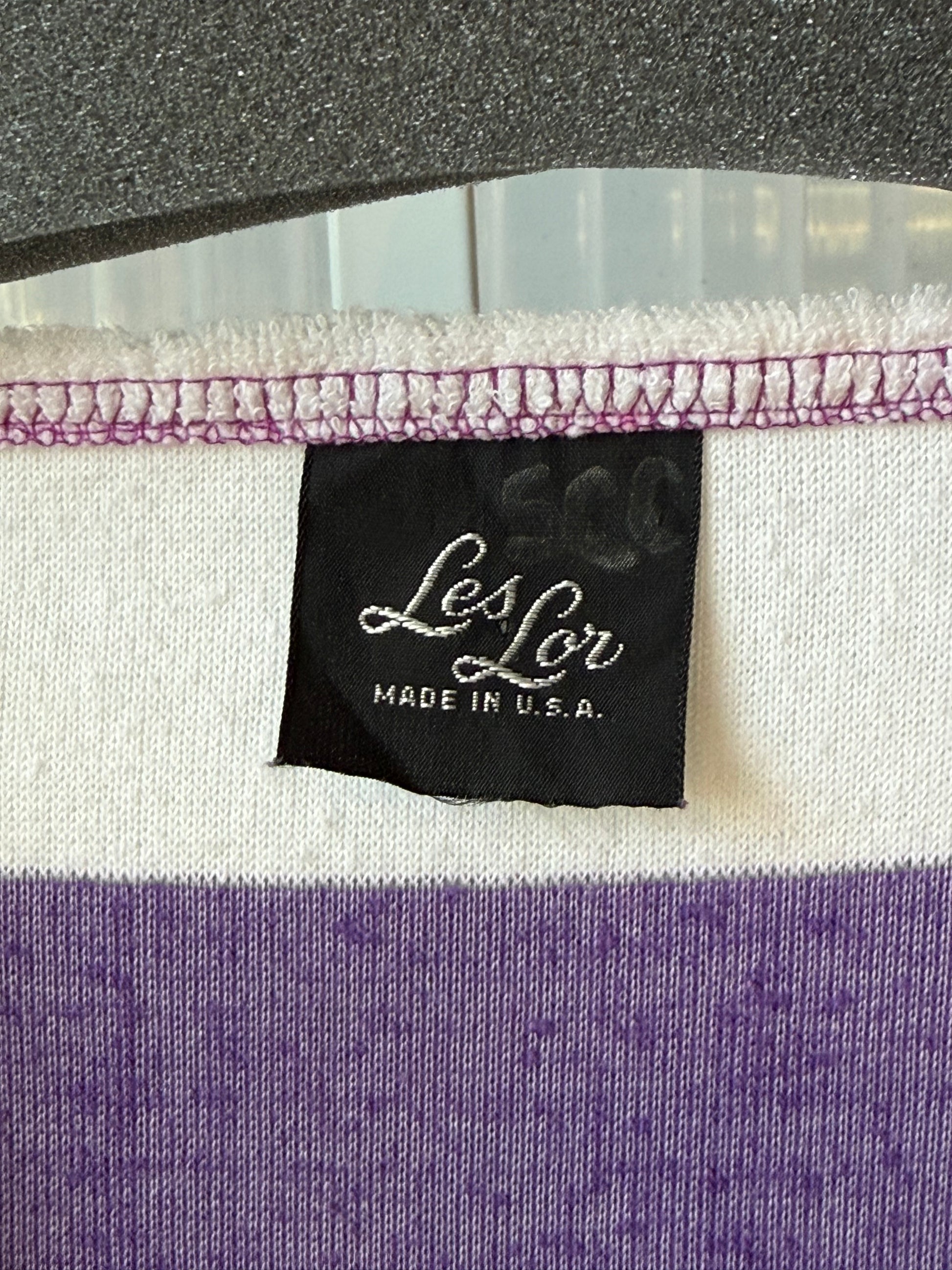 1980s Purple & Pink Striped Terry Cloth Boat Neck Shirt