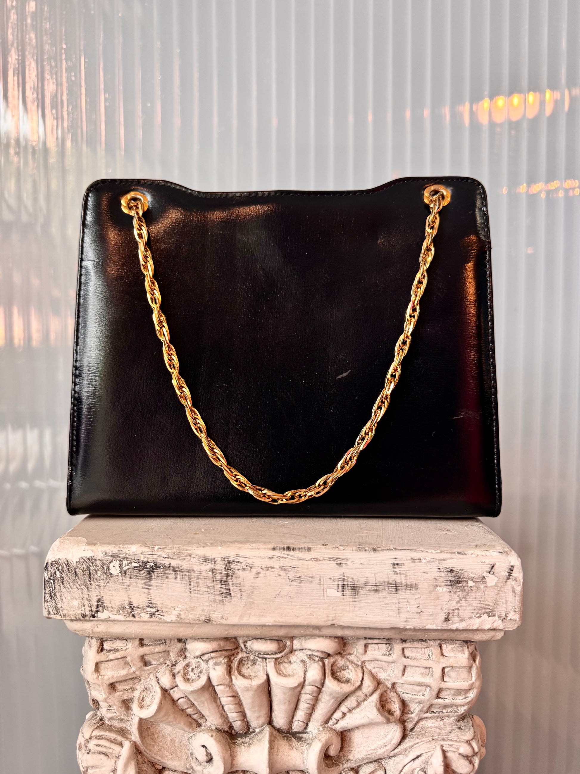 1960s Gold-Chain Black Handbag