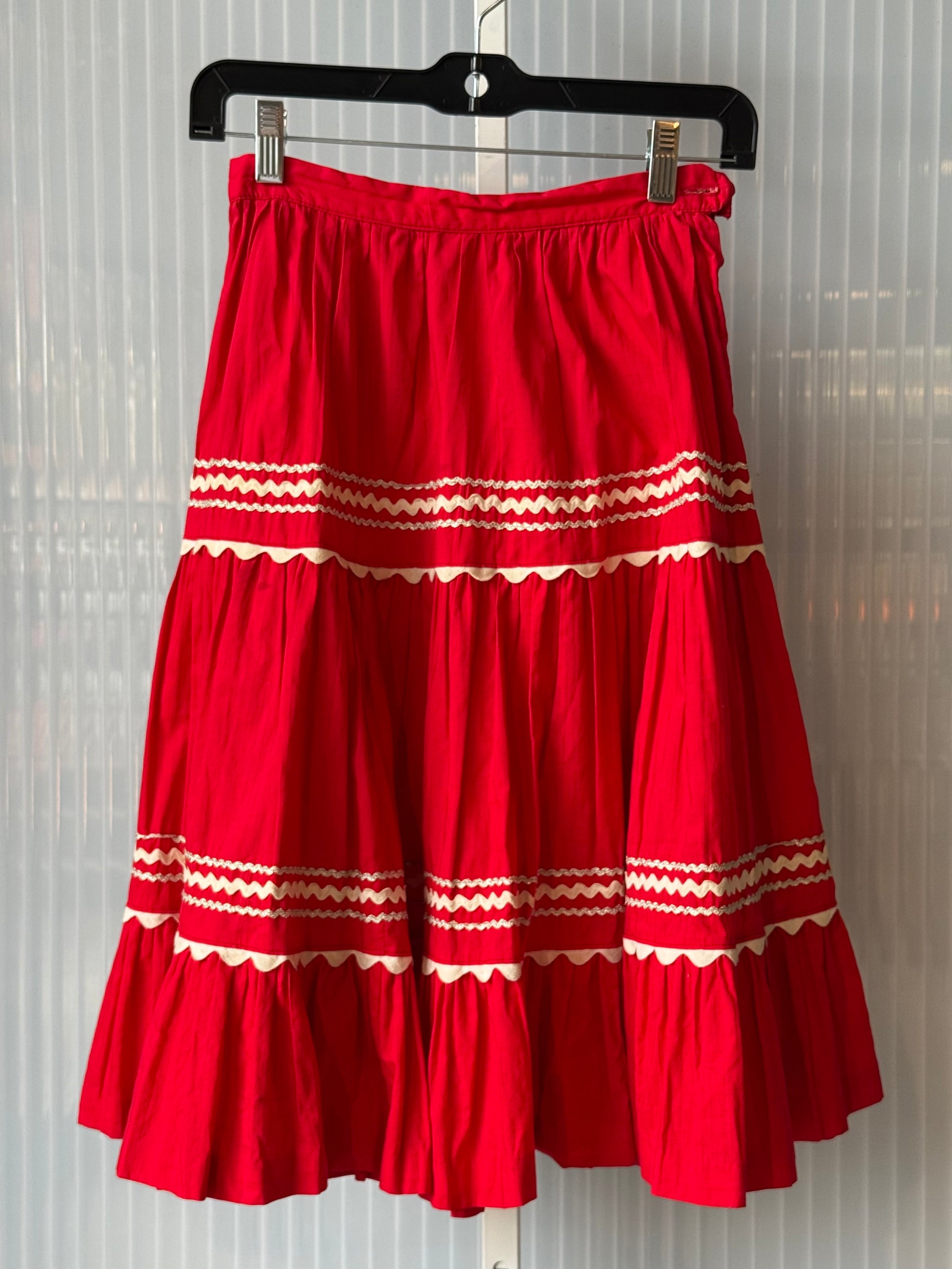 1960s Red Pleated Rik-Rac Skirt