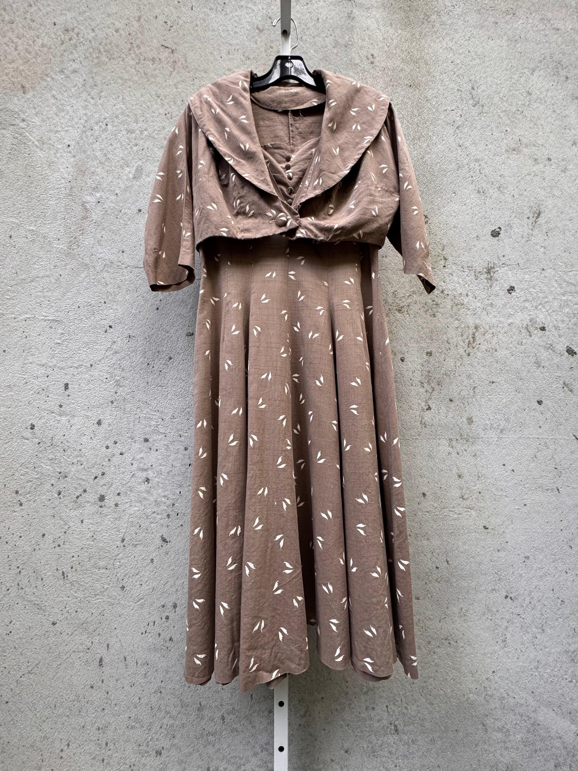 1950s Taupe Fit & Flare Dress and Jacket Set