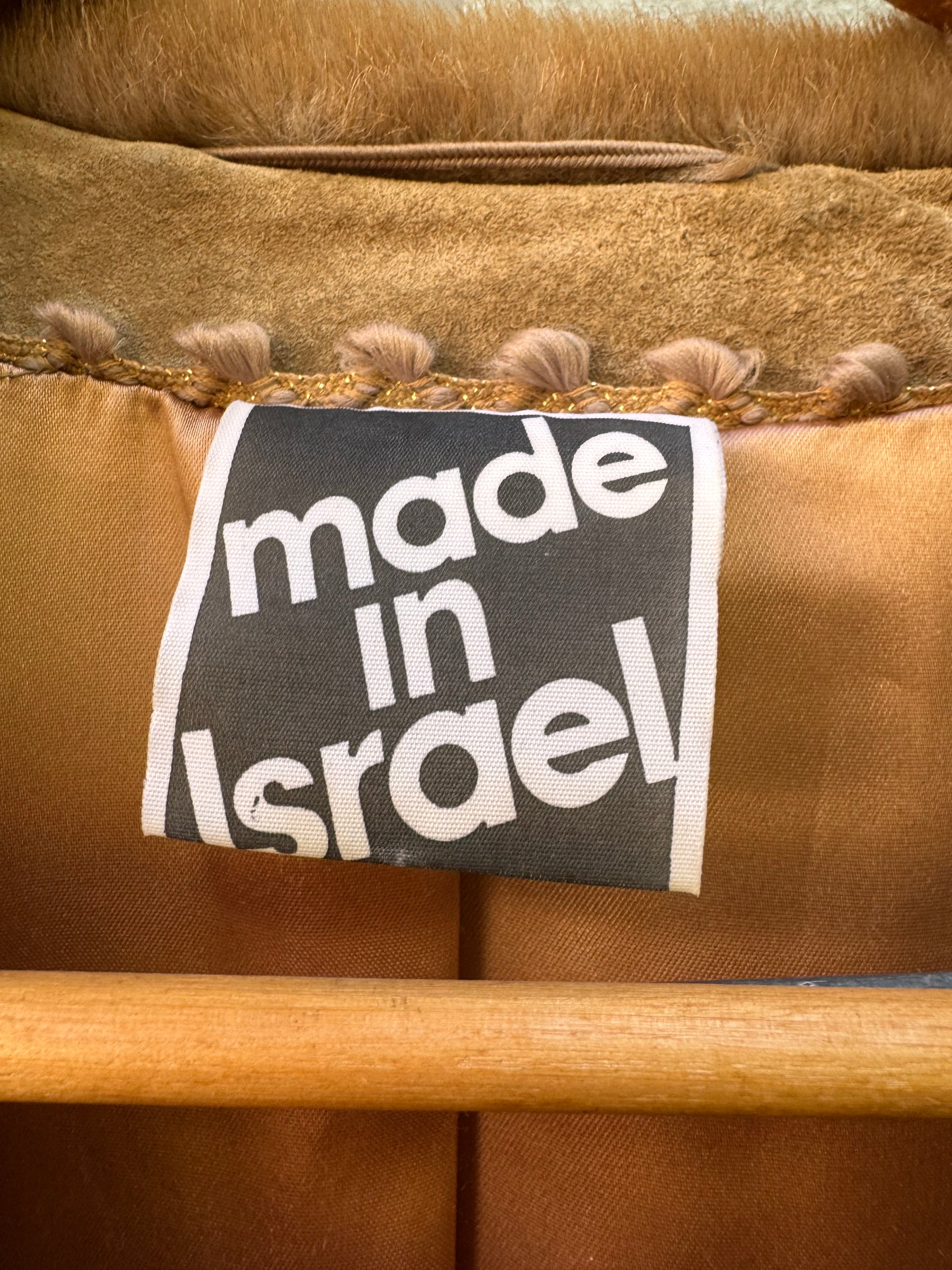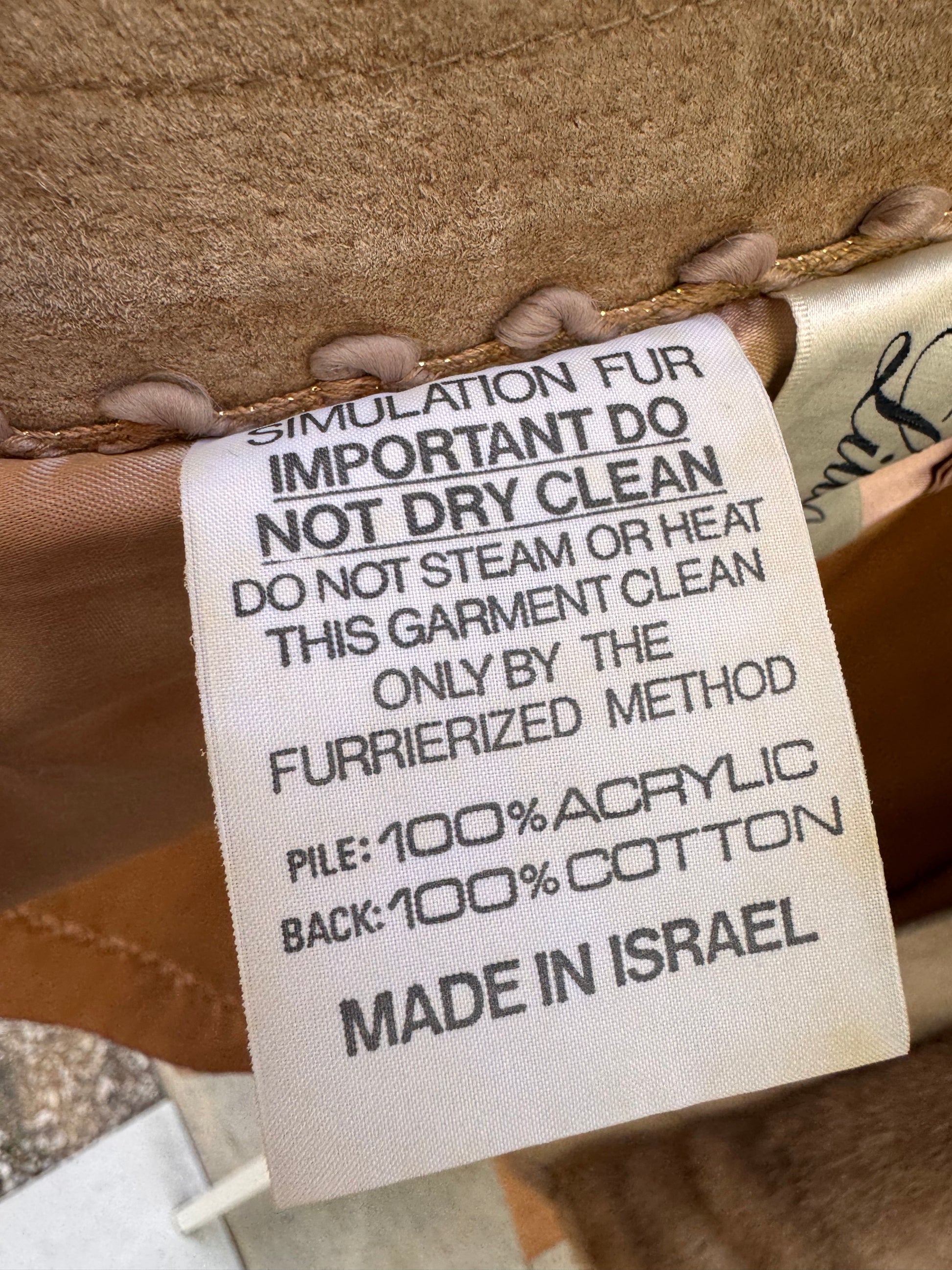 Beautiful Faux Fur Jacket, Made in Israel. Large Collar, Paneled cotton faux-suede underarm, cuff, and lapel.