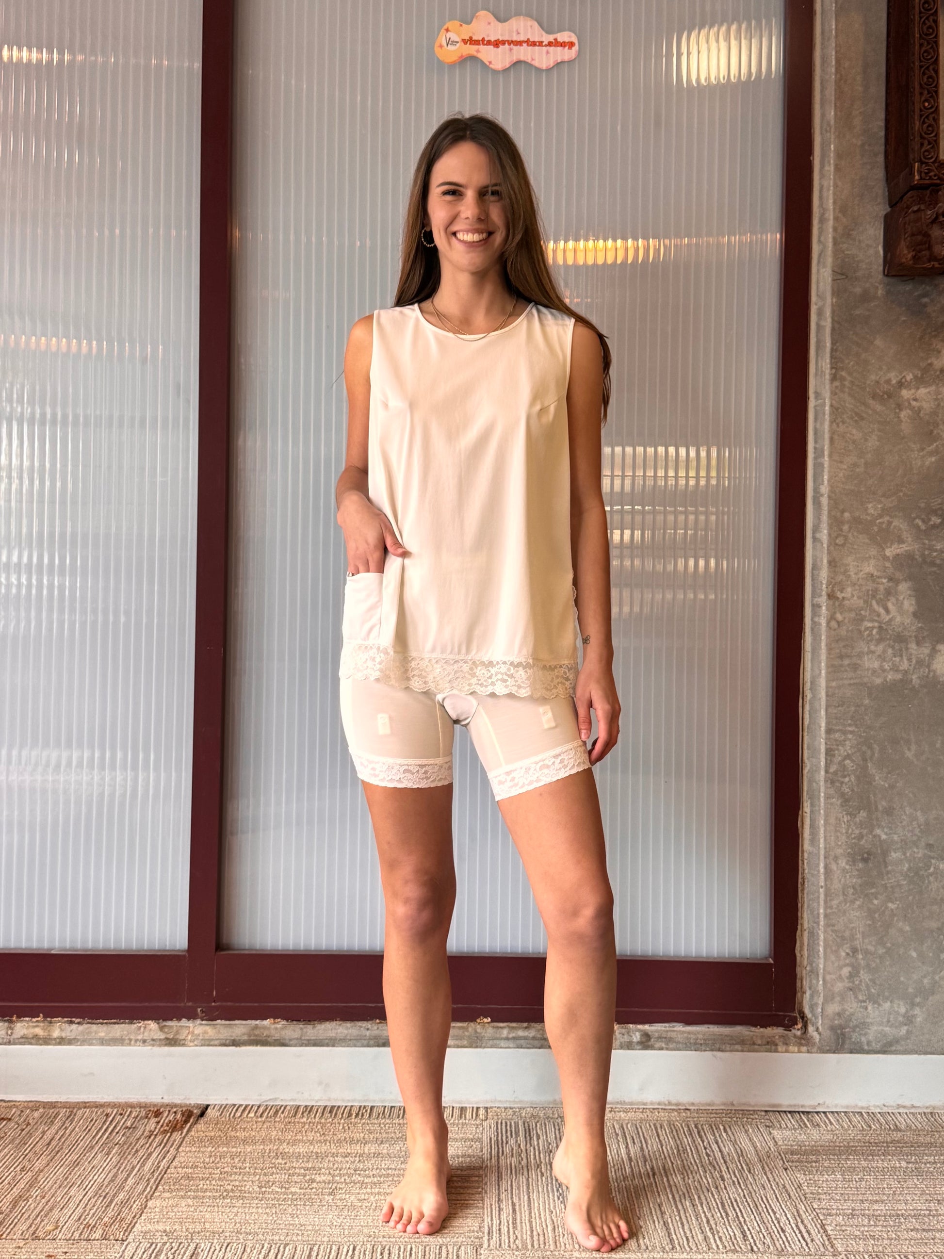 White camisole/lingerie/sleep top/blouse with lace panels on side